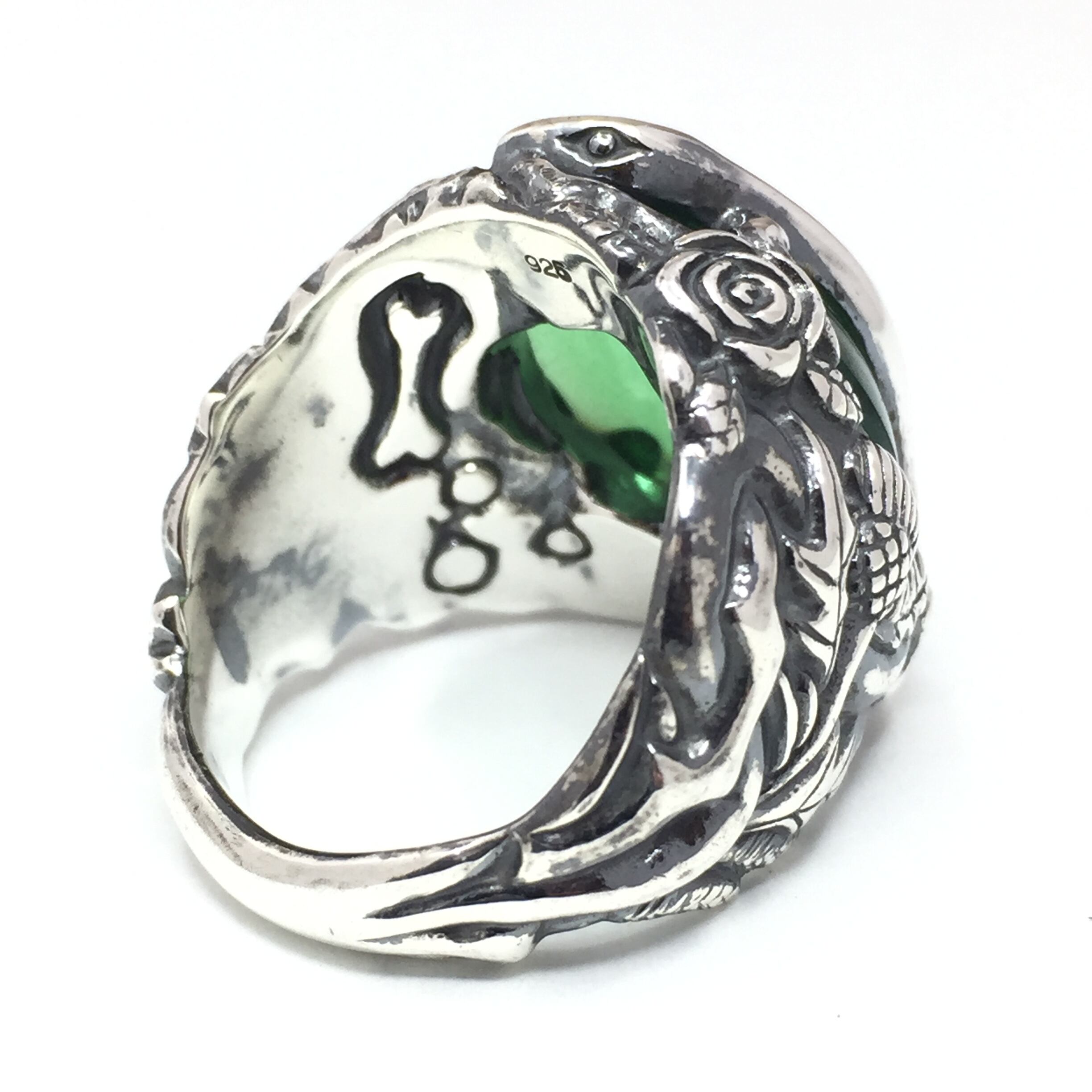 自然に生息する蛇や蝶、アザミ・コスモス・雑草など多種にわたる植物が描かれ、樹脂は水たまりを、、、 リングの内側は地中をイメージして作られています。